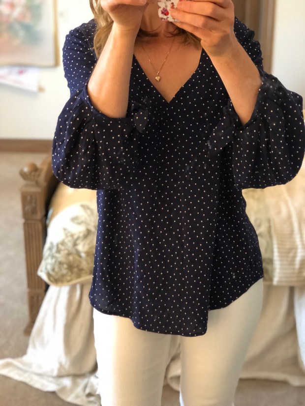 I also grabbed this pretty blouse because it looks like sleeves with detailing are going to be a thing again. I adore navy, and again, this can be a summer/spring/fall blouse depending on whether you wear it with blue jeans, white jeans or whatever!