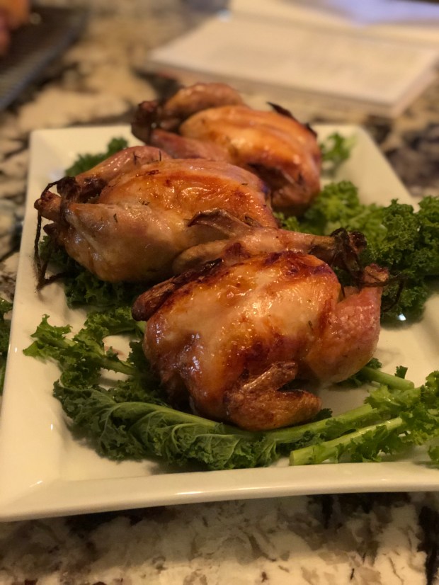 Scary at first, and sort of icky to handle, but they turned out delicious! Juicy, well, seasoned, surprisingly simple, I’d so make Cornish game hens again.