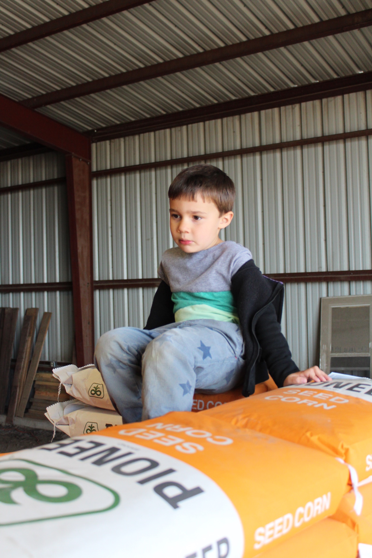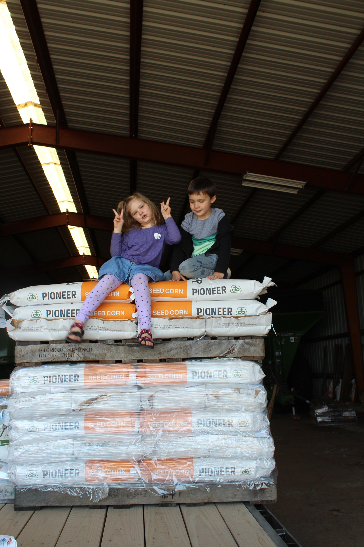 Fortunately, there were big, heavy sacks of seed corn for the kids to play on!