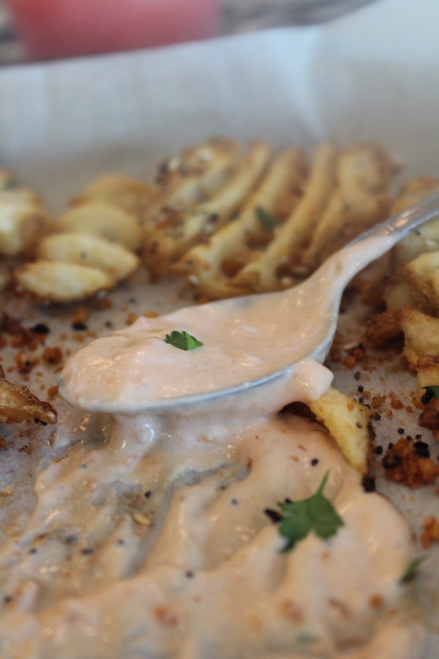 While the fries are baking, get started on your sauce so you can waste no time digging in when your newest addiction comes out of the oven!