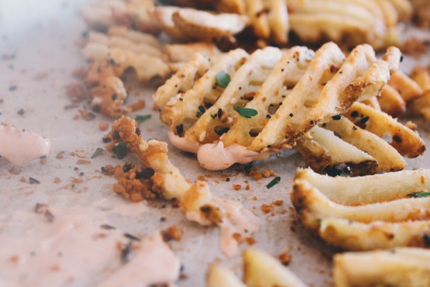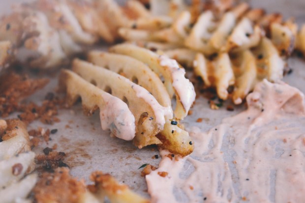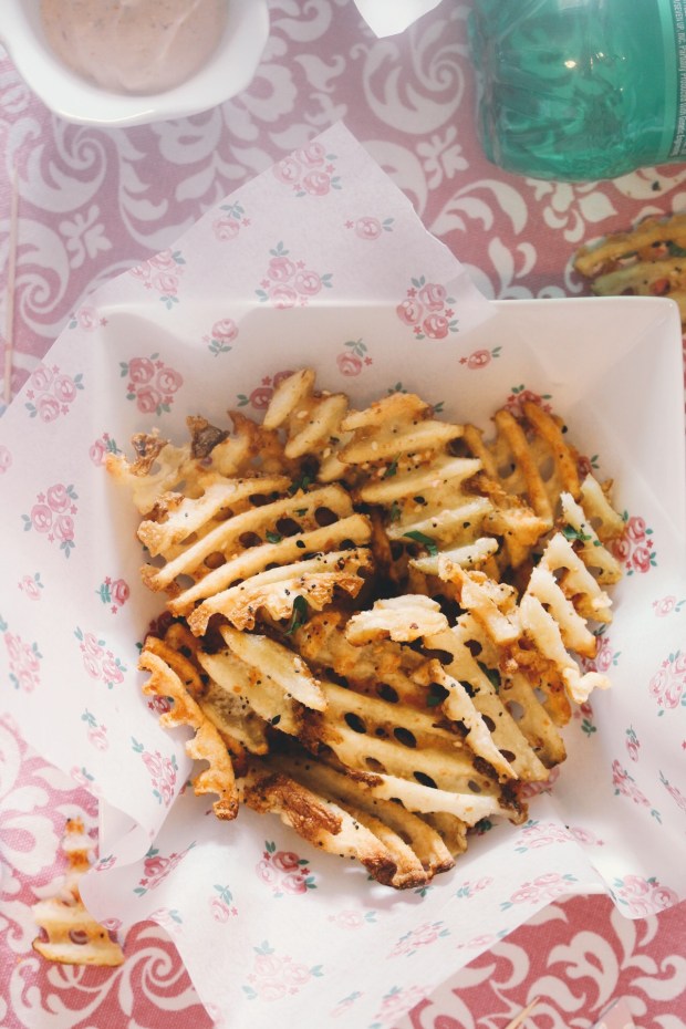 - 3/4 lb waffle cut fries (Or just the whole darn bag if you’ve got room on your baking sheet)