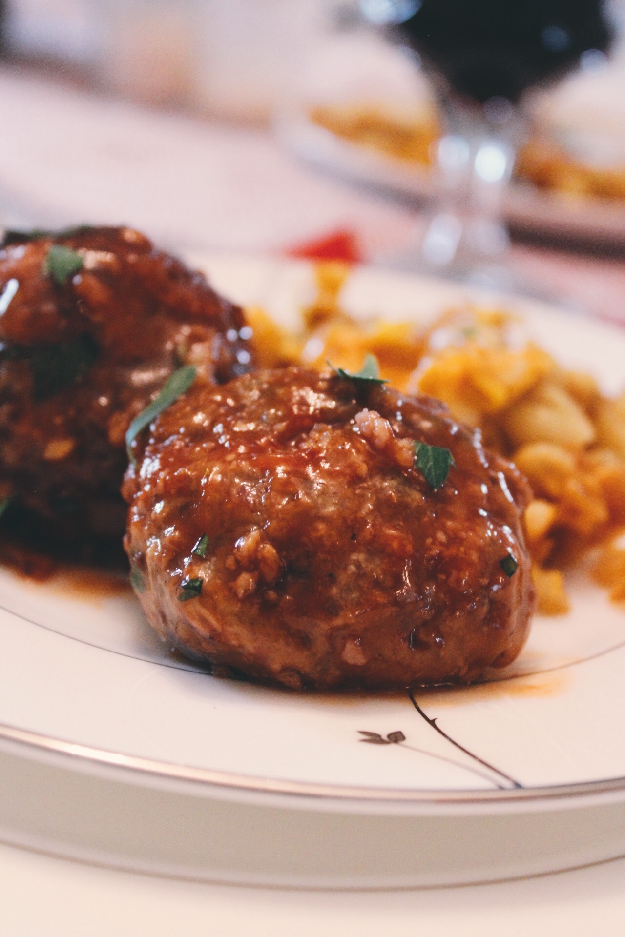 Mix the first 8 ingedients in a very large bowl and form into balls. Bake at 350 for 25 minutes in a 9×11 baking dish, then drain off the fat as best you can and return the hamballs to the pan. Add half of the sauce and bake for an additional 20 minutes. Remove from the oven and pour the rest of the sauce over the top and serve warm. You can even move the hamballs to the slow cooker after they come out of their second round of baking and pour the sauce over them in there. They’ll stay beautifully until you’re ready for them!